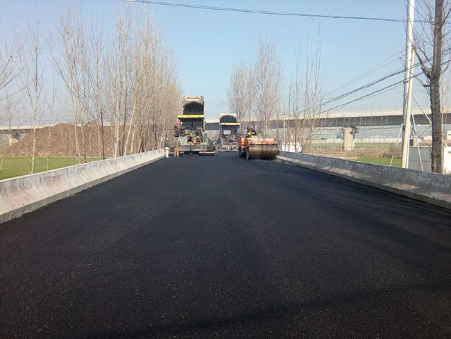 2016年12月4日,焦作市小皓路开始施工,采用SBS和ACMP两种改性沥青进行铺筑,同等级配SBS改性沥青油石比为4.8,出料温度180°左右,碾压温度150°左右,ACMP温拌改性沥青油石比3.8,出料温度120°左右,碾压温度80°左右,铺筑效果均达到国家验收标准,通过数据显示,充分体现了ACMP温拌改性沥青节能、环保的巨大优势。