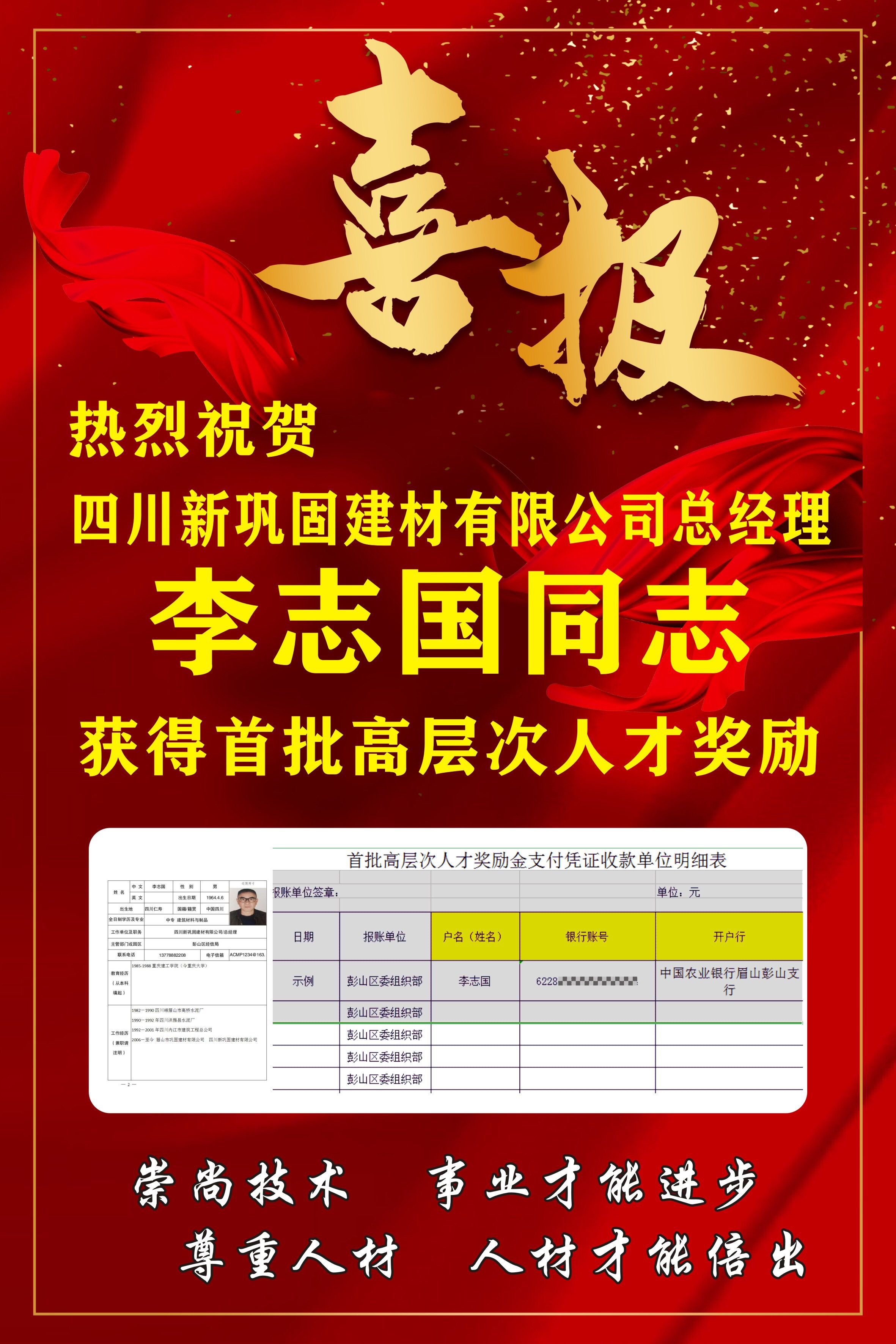 热烈祝贺四川新巩固建材有限公司总经理李志国同志获得首批高层次人才奖励.jpg